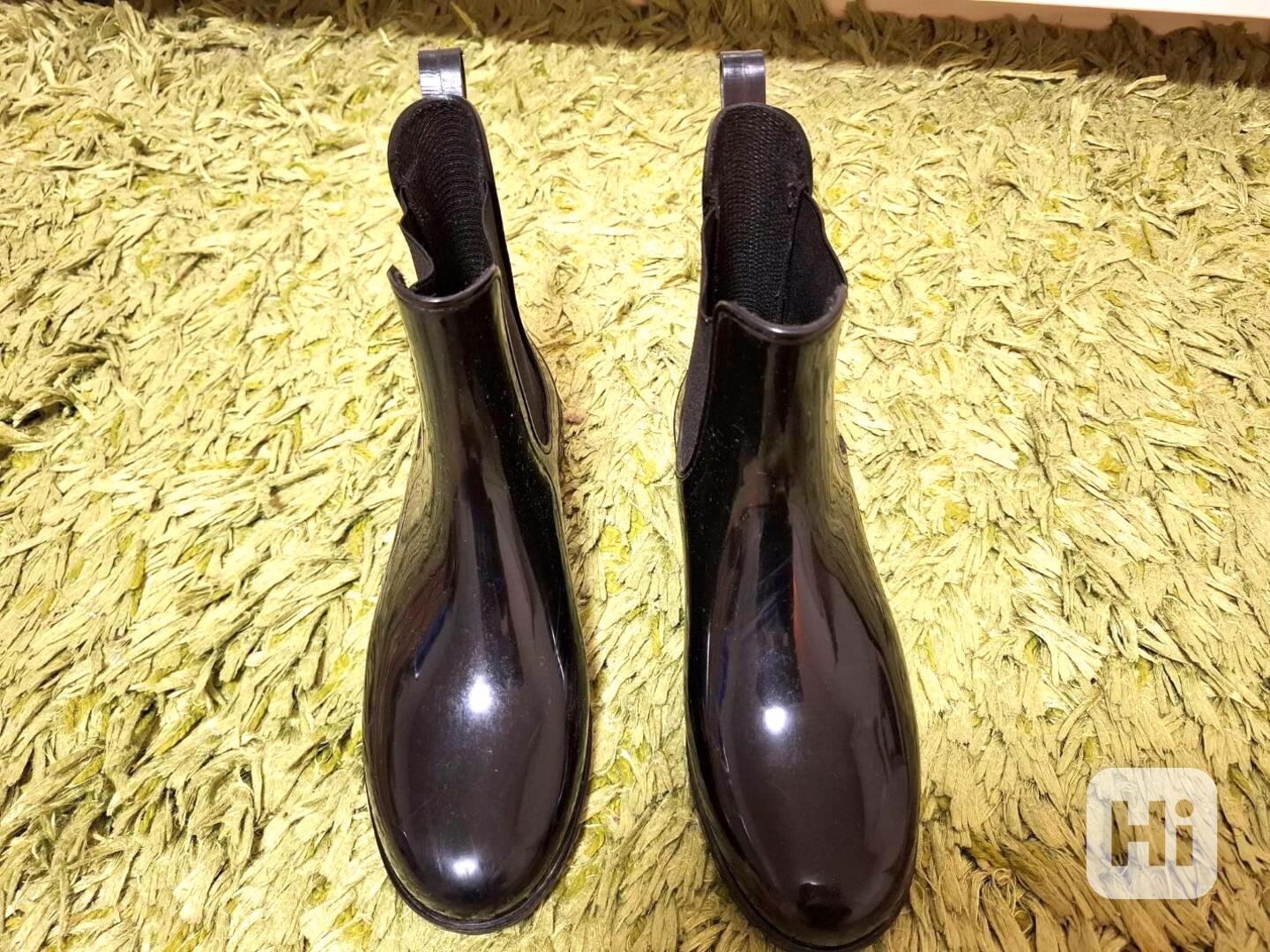 Prodám lesklé, černé holínky nad kotníky, značky Esmara, koupené v Lidlu, vyrobeno v Itálii. Velikost odpovídá č.39. Snadné obouvání díky postranní gumě a poutku vzadu. Vhodné na užší nohu. Použití jak do deště ven, tak i k elegantnímu oblečení do kanceláře za mokrého počasí. Jen párkrát nošené, ve velmi dobrém stavu. Cena: 250,- Kč. Předání osobně v Praze, platba v hotovosti.