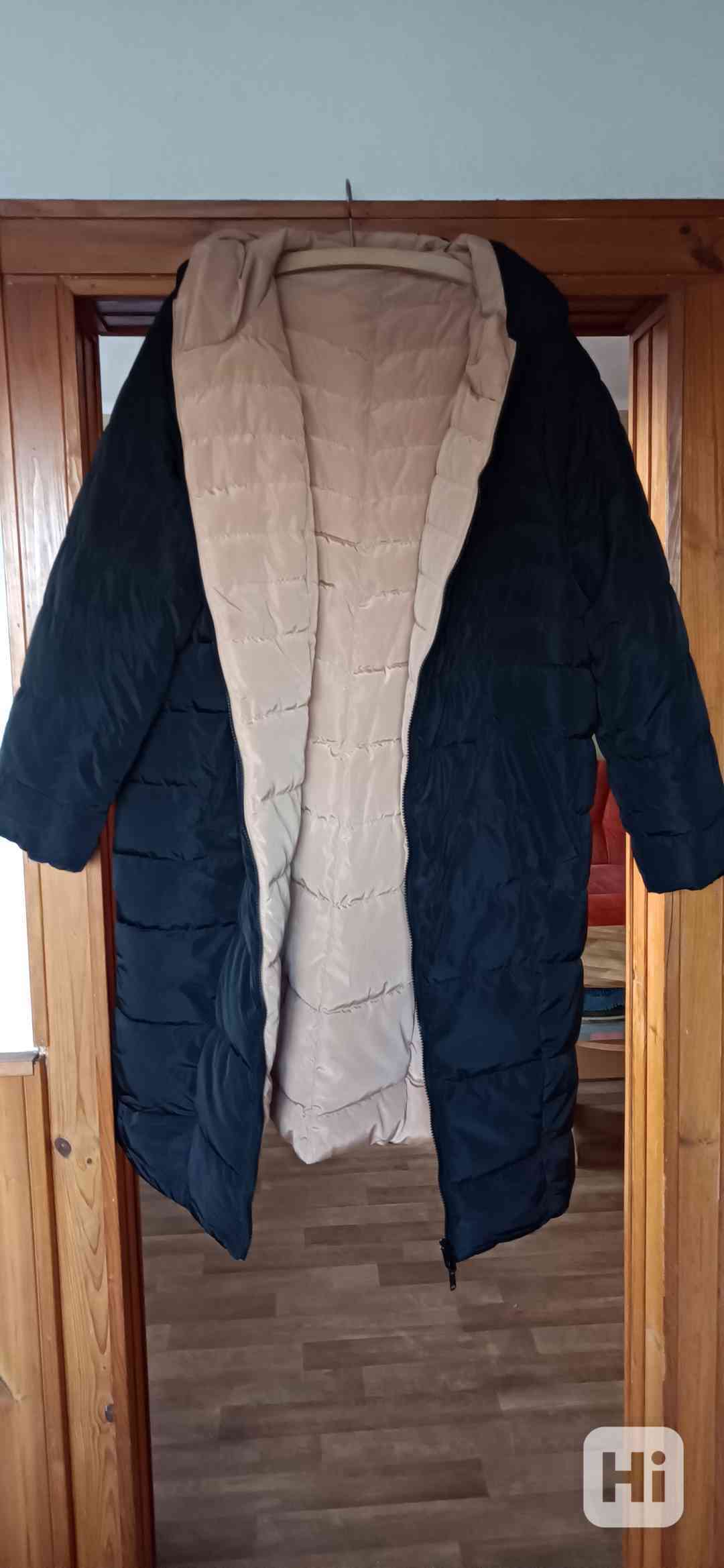 Prodám nenošený dámský zimní oboustranný kabát se zipy na stranách. Velikost 50 na výšku cca 1,75.