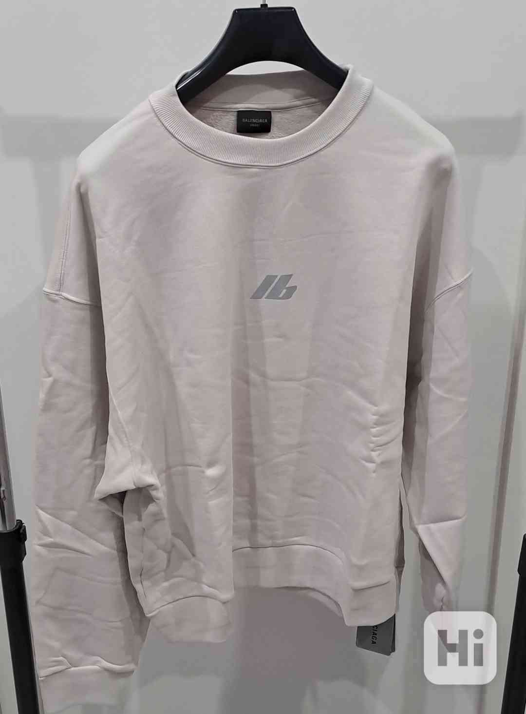 prodam UNISEX mikinu zn. BALENCIAGA,uplne novu s vysačkama, model:Balenciaga Activewear Crewneck Sweatshirt, bledošedej barvy s potlači, 100% bavlna, velikost L , rozmer vid foto , delka , širka, delka rukavu, cena 3300 kč + doprava zdarma