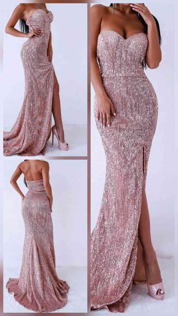 Krásné dámské samodržící dlouhé šaty. Vel. 38. Dvě vrstvy, jedná průsvitná s trpytivyma kamínkama a pod ní neprusvitna část. Po vrchnim obvodu gelové pásky, aby šaty nesjeli. Úplně nové.