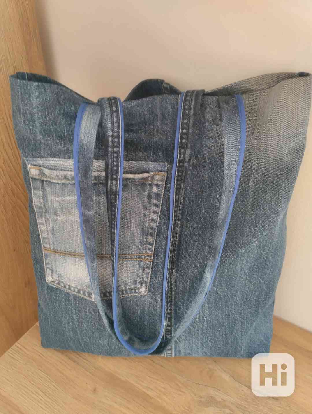 Jednoduchá nákupka bez podšívky. Delší ucha, aby se dala nosit přes rameno. Jedna našitá kapsa z venkovní strany.