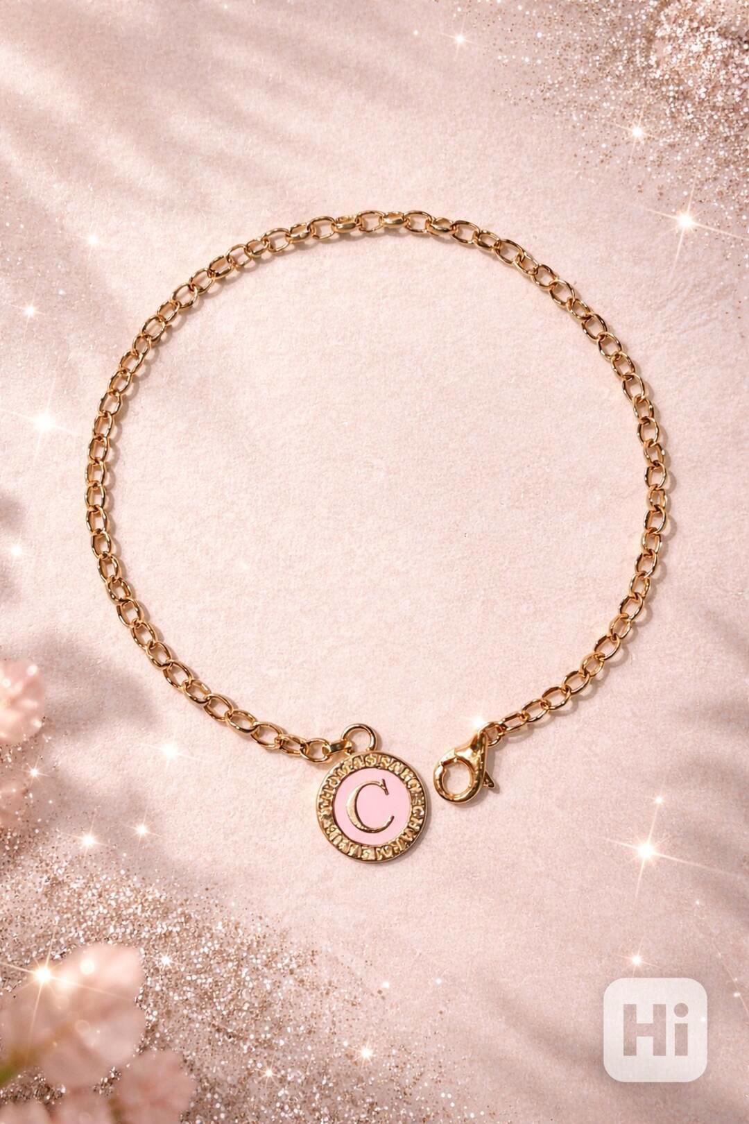 Jedná se o elegantní řetízkový náramek z pozlaceného stříbra, doplněný přívěskem s písmenem.