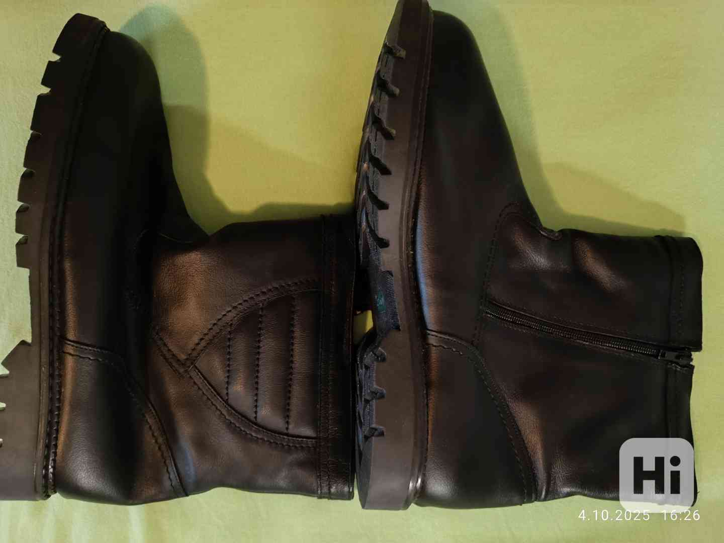 Prodám nové KOŽENÉ ZIMNÍ BOTY, nižší holeňové, uvnitř kožíšek, vel.30 (tj.10, 46) černé pohodlné, uvnitř mají teplý kožíšek v hnědé barvě, na vnitřní straně zapínání na pevný zip. Podrážka s hlubokým zimním vzorkem, spodek šitý. Boty jsou kvalitně ušité a pohodlné. Výroba ČR. Nejlépe osobní odběr Plzeň.
