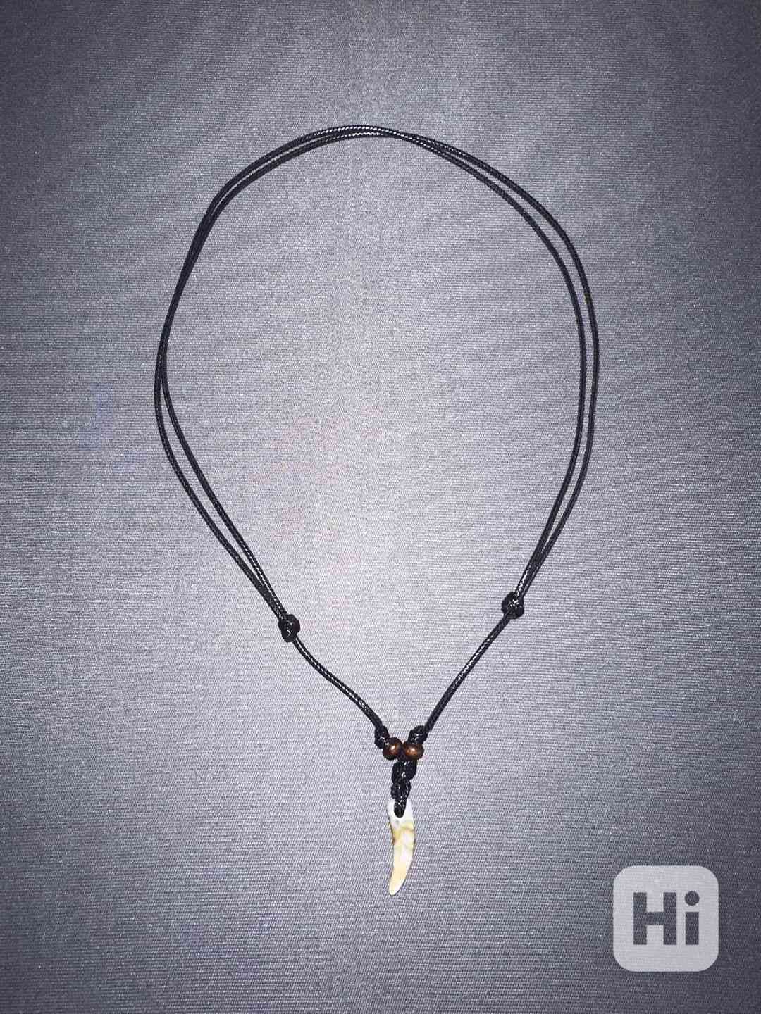 Prodám náhrdelník vlčí zub s nastavitelným zapínáním. Nastavitelná délka 45-65 cm. Tloušťka voskované šňůrky 1,5 mm nebo 1mm.
